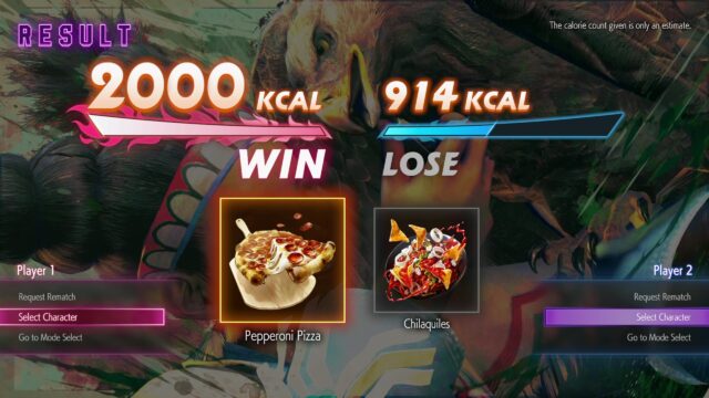 Another fun addition is Calorie Contest, a fitness-inspired mode where players build up a calorie meter rather than depleting a health bar. The mode tracks your motion-based inputs—attacks and Super Arts increase your calorie count—and rewards you accordingly. In my match, I hit the 2,000-calorie mark just before the timer ran out and was rewarded with a slice of pepperoni pizza (on-screen, unfortunately). It’s a clever nod to Street Fighter‘s famously intense matches, now with a lighthearted, health-conscious twist.