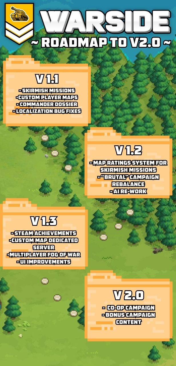 Developer LAVABIRD and publisher First Break Labs have revealed the official roadmap for Warside, the turn-based tactics battler that wears its old-school war game inspirations on its sleeve. The roadmap outlines a series of upcoming updates that will eventually lead to the highly anticipated co-op campaign in Version 2.0.