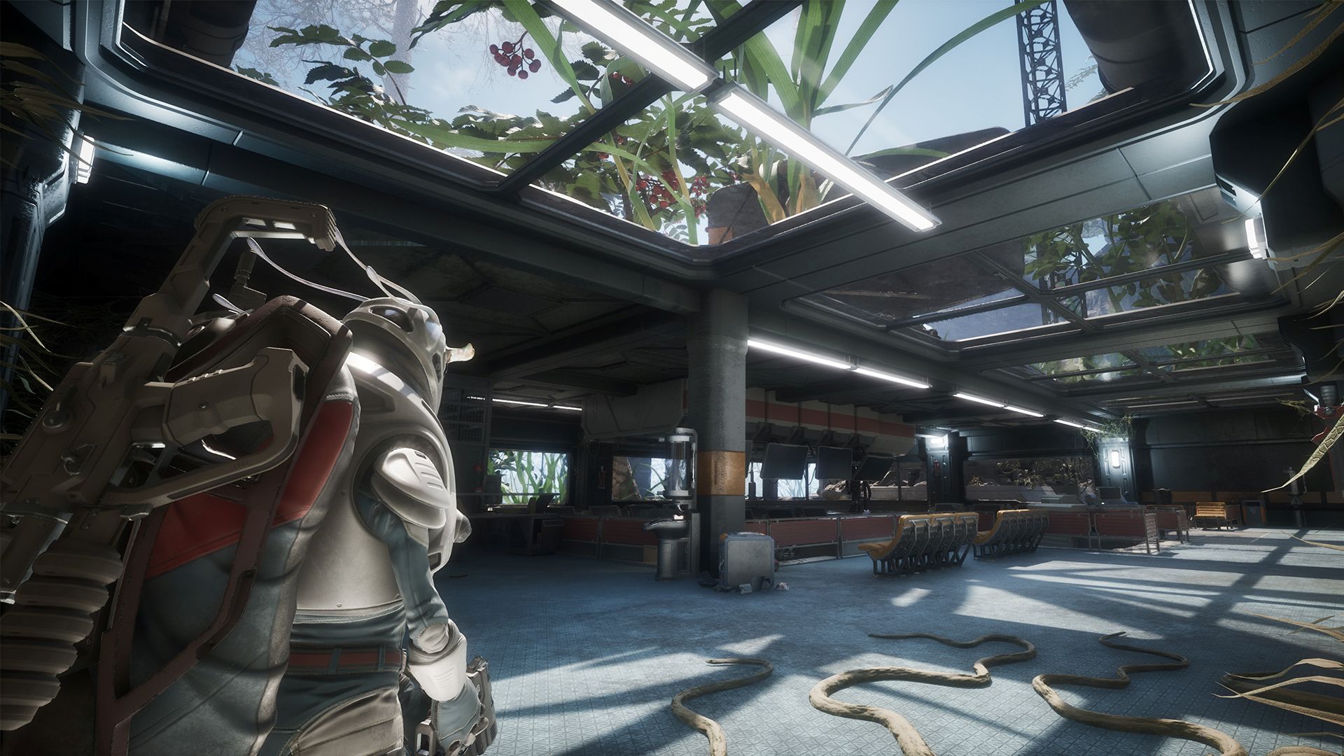 Combat and gear progression come in the form of collectible “spears,” alien-tech items that function both as weapons and tools. There’s no base building in the traditional sense, but collecting spears and expanding your arsenal functions as a kind of progression system. Each new acquisition adds new offensive or utility capabilities, allowing players to adapt to challenges with more than just twitch reflexes.
