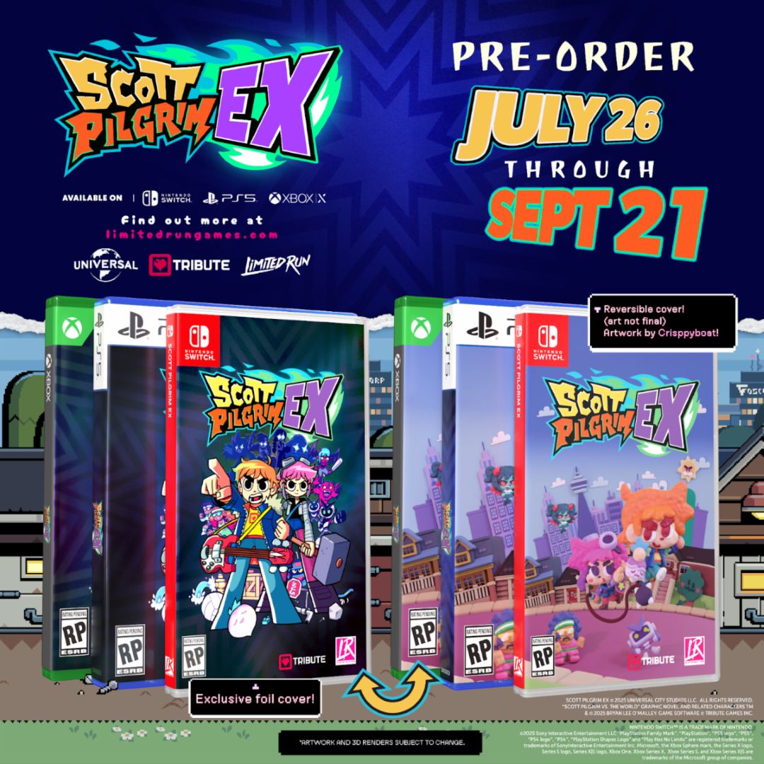 Alongside the gameplay reveal, Tribute and Limited Run Games announced three physical editions of Scott Pilgrim EX, each packed with exclusive collectibles. Pre-orders are open now through September 21, 2025.