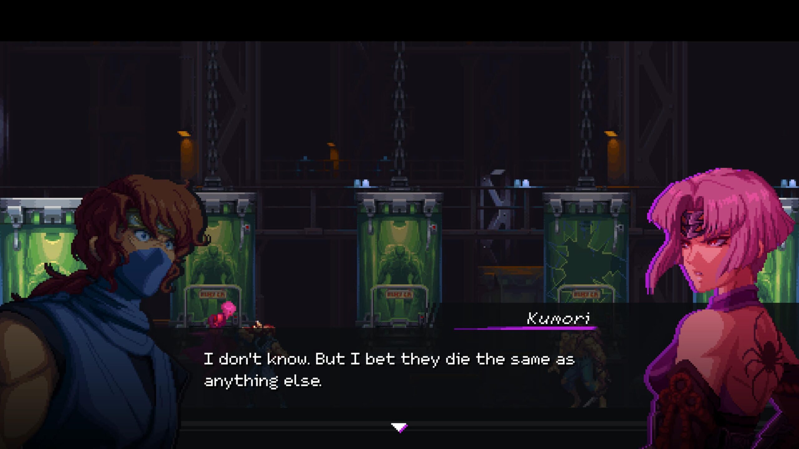 And many will want to do that, as Ninja Gaiden: Ragebound is certainly a skill-based hack-and-slash platformer. The base difficulty feels just right, as I died a fair amount but never felt frustrated or slighted. Enemy placement is clever but fair, and you respawn quickly after death at an always fairly placed checkpoint. The game was clearly made to be attempted as many times as possible with smoothness in mind, which goes a long way in making even the hardest parts feel entirely doable.