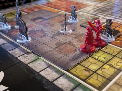 This is only elevated by the tile that’s part of the box set. Without giving too many story beats away, one side of it is the bar the heroes all start in, while the other serves as the crypt where the final battle takes place. Even though the main mat has a lot to play around with, the tile gives the game that extra bit of life to help things stand out and tell a more immersive story. In addition to that, it’s also packed with smaller trap tokens that can be used to harm heroes whenever they carelessly enter a room.