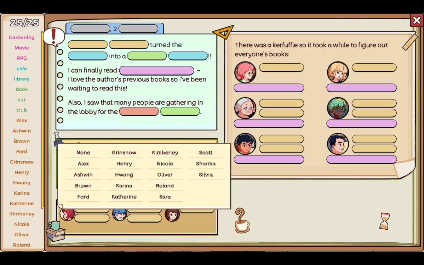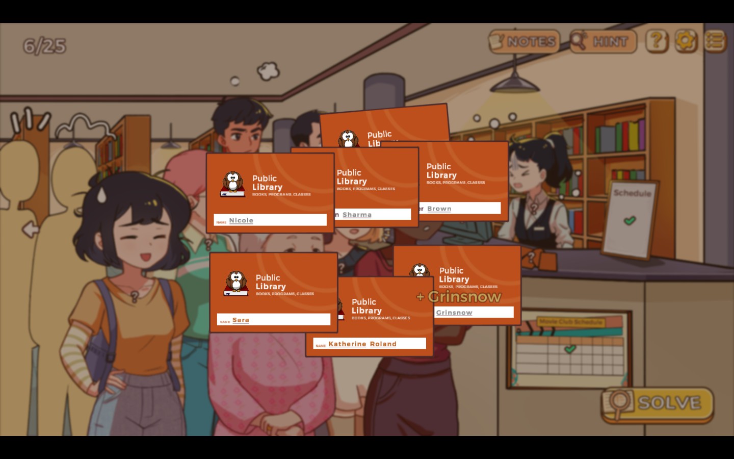 Instead of a detective game, I would describe Little Problems as an unusual sort of puzzle game, one that tests your observation and comprehension skills. A character might be carrying a paper that shows you part of their name. Another character’s phone messages could contain a clue about who someone else is. You might need to check both a calendar and a class schedule to figure out what day it is, or consult a library’s computer to figure out who was getting which book. Those are the kinds of situations it asks you to figure out: who was involved in the scene, and what was each of them doing there? For something that sounds so simple on the surface, it gets to be quite challenging, especially as more characters and complex situations are introduced. Fortunately, you can type notes for yourself, so it isn’t entirely reliant on memorization.