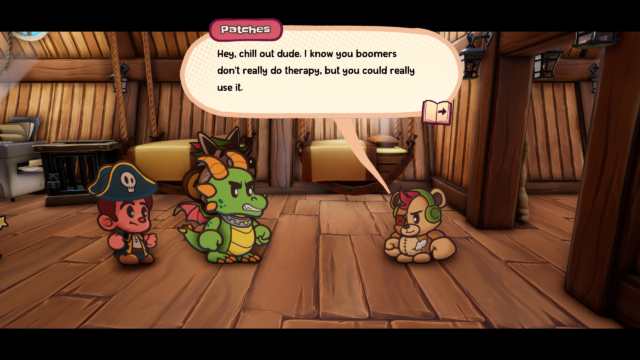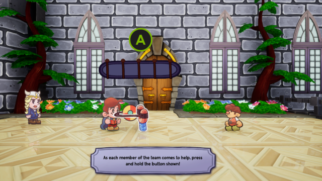 The gameplay itself should be fairly familiar to turn-based RPG players, with action commands used for both offense and defense. The game does not mention it, but there’s at least one “hidden” ability in the fact that Tinder can set foes alight, and if Flynt’s shield passes through a burning enemy, he can spread the fire to each enemy. I don’t know if this remains true for your other three party members. Unlike Paper Mario, you can actually switch Flynt out if needed, so it may be worth experimenting. If you’re a part of the audience who wished the Paper Mario series had a bit more difficulty to it, you’ll be right at home here. This does mean if you’re not paying attention, you can waste an entire turn because you tried to attack an enemy who’s guarded against melee attacks, or is brandishing a shield. I do feel like the reliance on shields got a bit excessive, but your fourth recruit helps greatly with that. The increase in difficulty is noticeable not just in combat but also in puzzles. An interesting note is that there are accessibility features in the form of Guard Assist and Attack Assist. I did not find the game overly difficult, but during certain tougher boss fights I found myself turning them on and off after the troublesome foe was dealt with. There is a fair bit of platforming, which is perfunctory, and even then, you normally don’t take damage from falling off a platform. As this is a small team and considering they’re following in the footsteps of Nintendo themselves, I can give a bit of grace when I misjudge where my 2D hero needs to be for a jump a handful of times.
