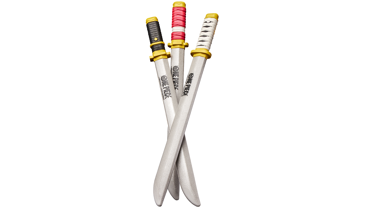 Check out pictures of the Going Merry Blaster and Zoro’s trio of katana below: