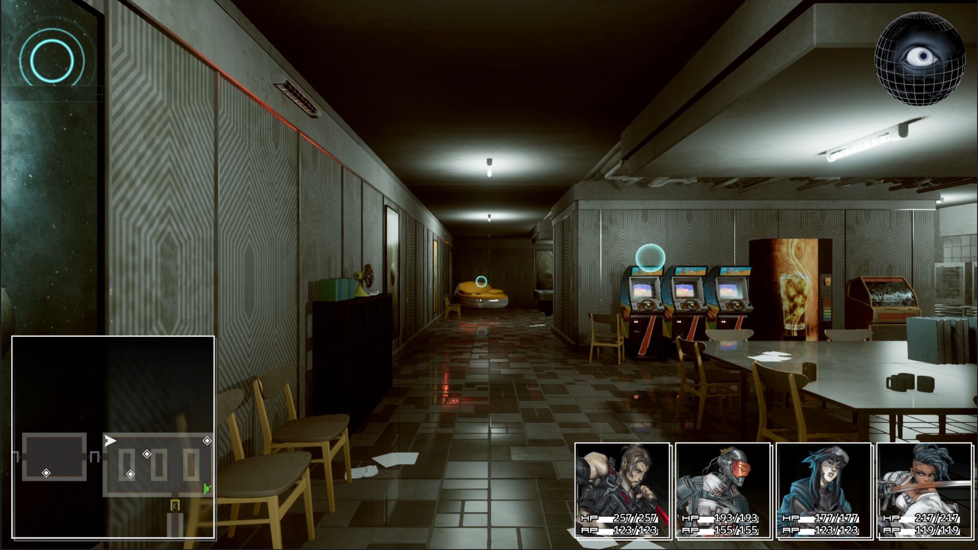 Players can explore the base using grid-based dungeon navigation, uncover hidden areas, and interact with strange characters encountered along the way. Combat is handled through tactical turn-based battles, where players must carefully manage their party and abilities as they face increasingly dangerous enemies.